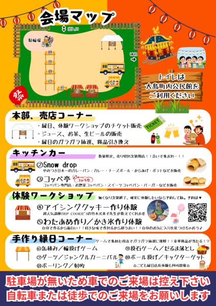 ●ボランティア募集内容:縁日ブース・体験ワークショップブース・縁日抽選ブースにて来場者とコミュニケーションを取ってお祭りを楽しむお手伝いをお願いします。