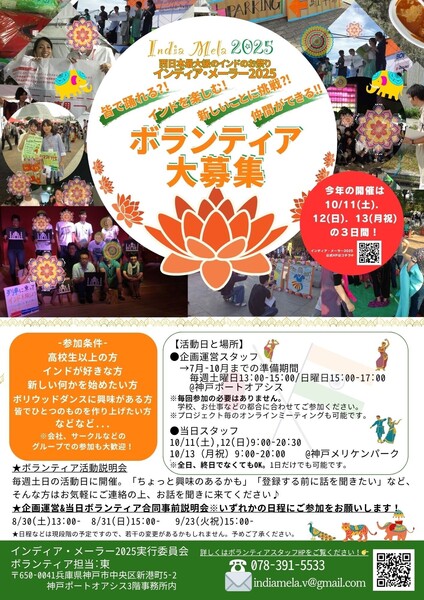 神戸で2010年より活動!在大阪神戸インド総領事館共催のインドフェスティバルのインディア・メーラーのボランティアスタッフグループです。