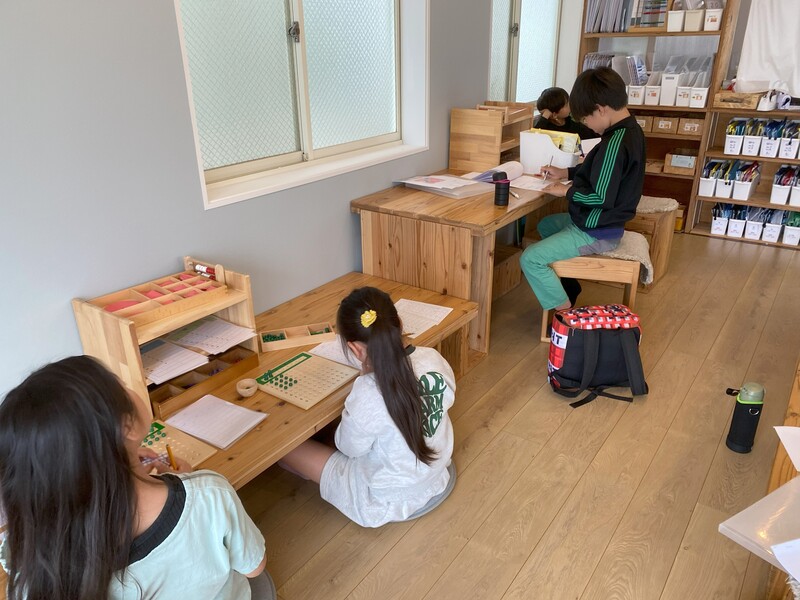 子どもたちが主体的に学ぶことを大切にしたレッスンを行っています 。入室から退室まで、子どもたちが自分で学習の流れを計画し、教具を使って学習を進めます 。