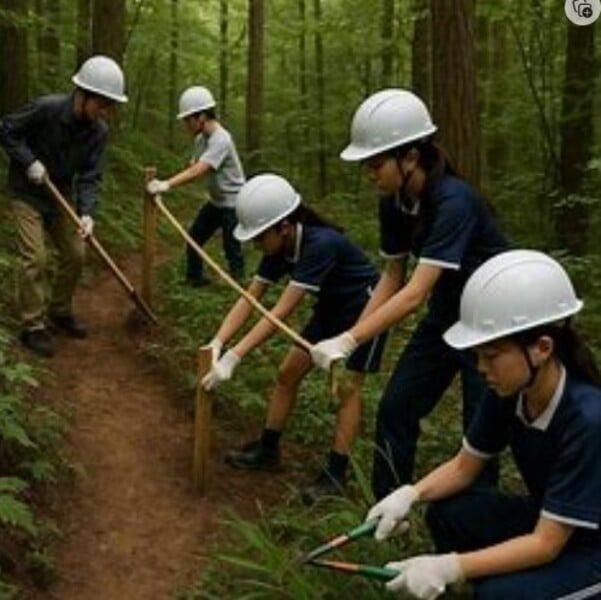 ごみ拾い、登山道整備、植林、伐採など具体的に計画を行い、