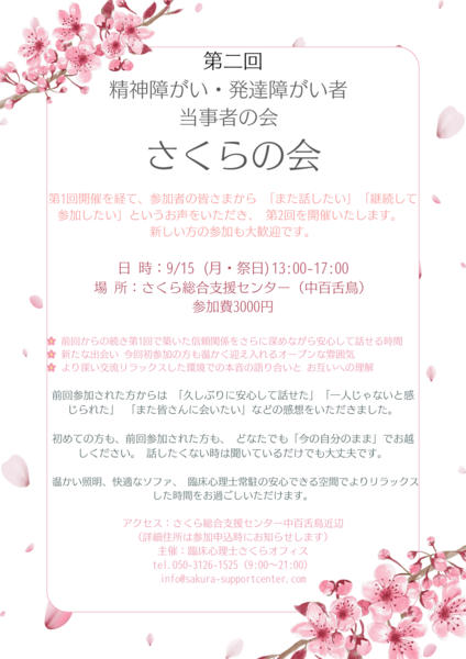 - 【心理相談員見習い!】精神障がい・発達障がい者当事者の会「さくらの会」