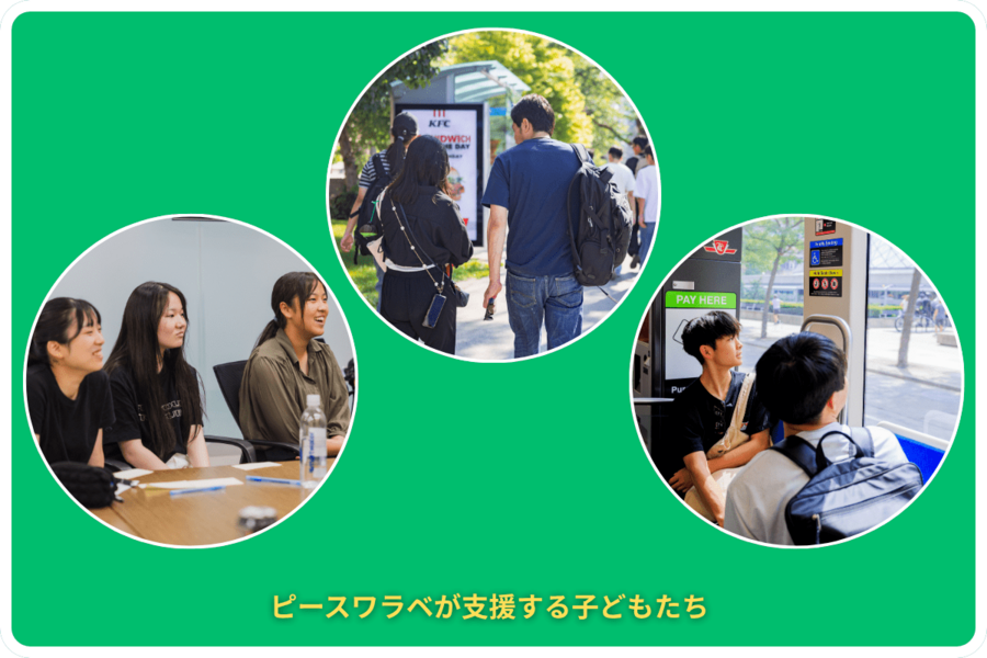ピースワラベは、児童養護施設で暮らす子どもたちに、信頼できる大人とのつながりや、学び・体験の機会を届ける活動をしています。