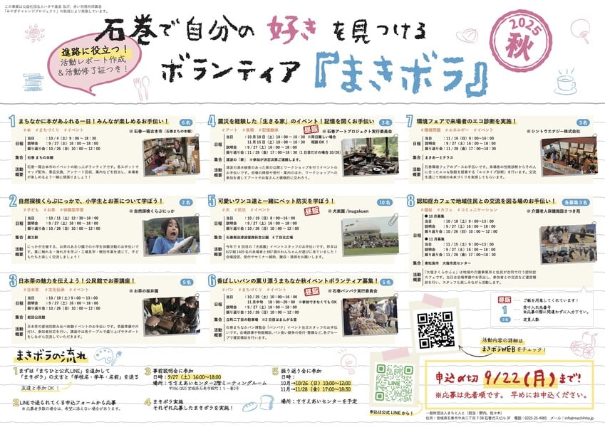 各ボランティアの詳細を知りたい方は添付画像もしくは「まきボラ」WEBページを見てみよう!