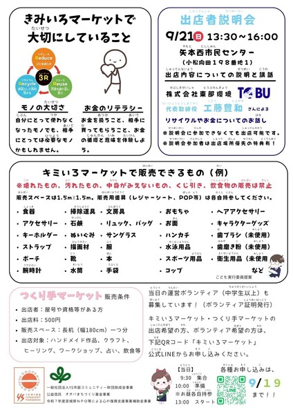 - 9/23午後から【東松島市】子どものフリーマーケットのお手伝い