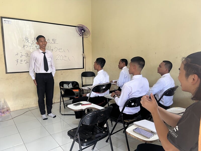 日本での技能実習生を目指す生徒に、日本語や日本の文化に関する授業を行います。