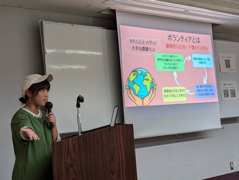 国際ボランティア活動に参加した経験者が、現地での活動の様子や感動・苦労・驚き・気付き、これからやりたいこと等を、様々なエピソードや画像・映像を交えながら語ります。
