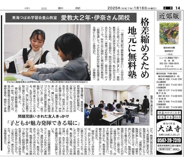 東海つばめ学習会は、愛知県春日井市を拠点として2018年4月1日に開始しました。