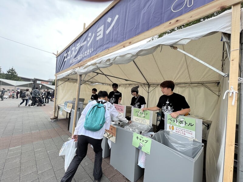 来場者が自分の手でごみ資源を分別できるようにする "ごみ資源の分別ナビゲート" や、ごみの根本削減に取り組む "リユースカップ・食器"の導入など、イベントの環境負荷を下げるための活動をボランティアと一緒に運営しています。