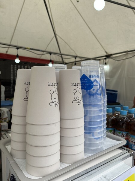 野外フェス以外にも、日常の様々な場面で出ている使い捨てカップに替えて、何度も繰り返し使えるリユースカップを導入しています。