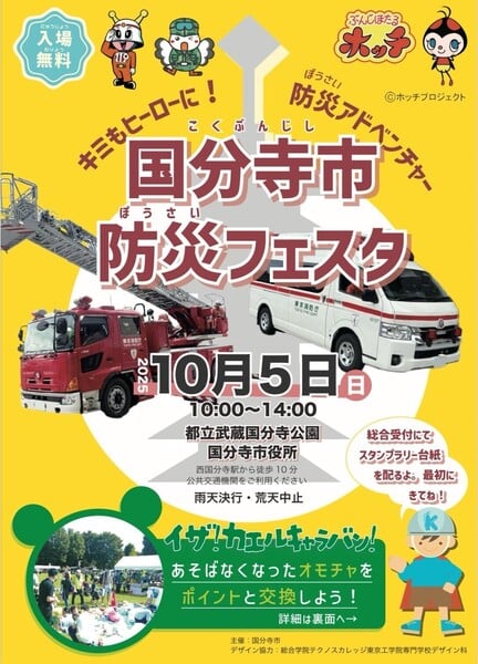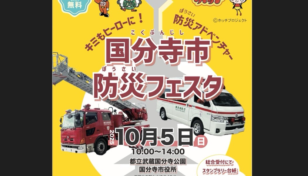 都立武蔵国分寺公園・国分寺市役所で開催される「国分寺市防災フェスタ」にレスキューキッチンカー®が出展します!