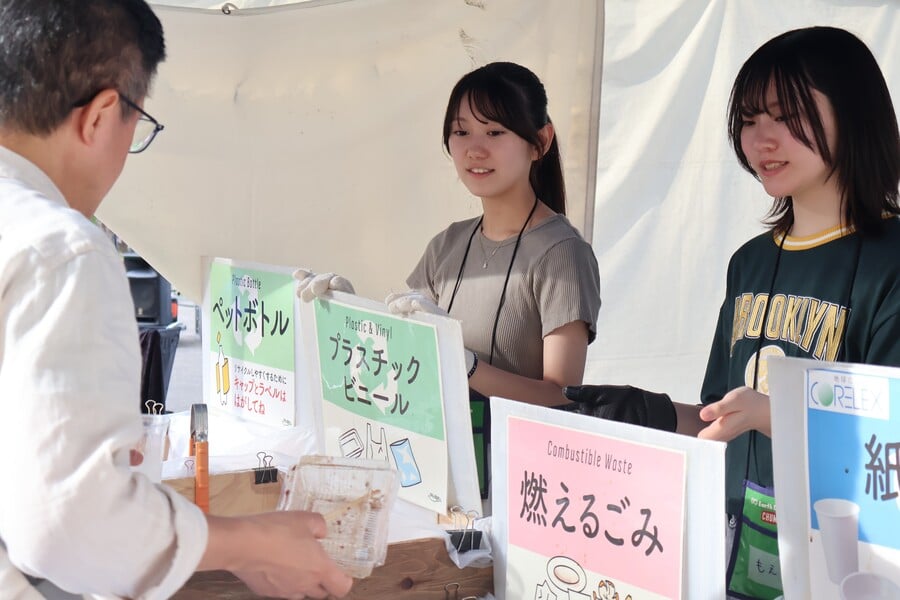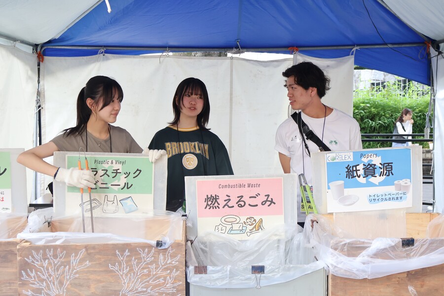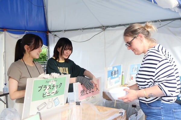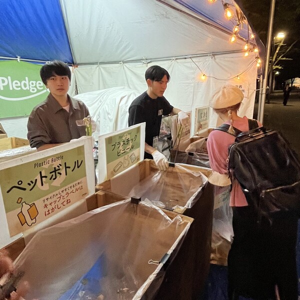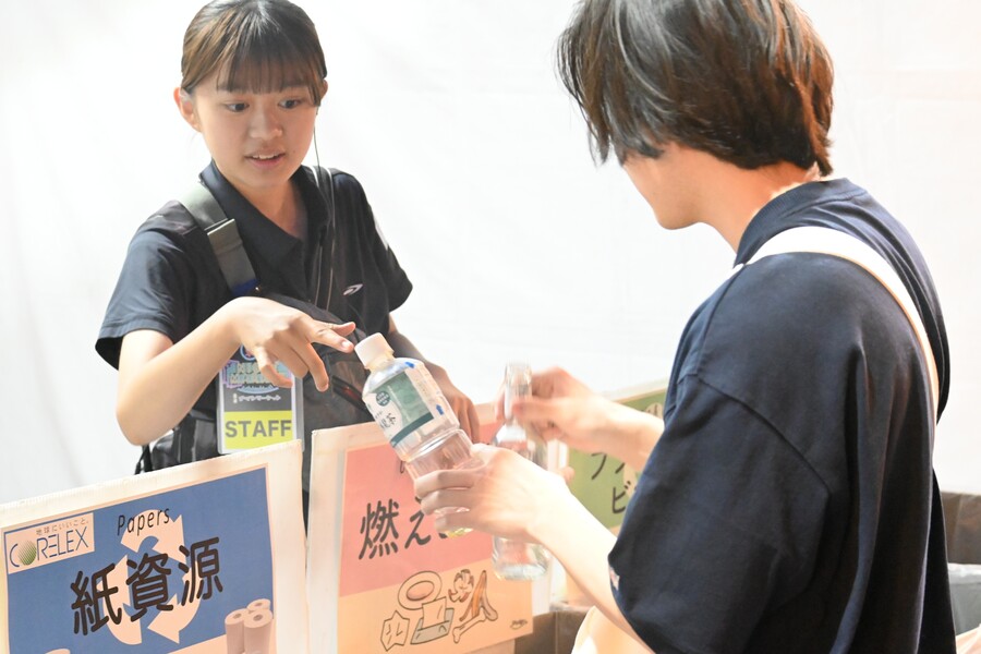 来場者が自分の手でごみ資源を分別できるようにする "ごみ資源の分別ナビゲート" や、ごみの根本削減に取り組む "リユースカップ・食器"の導入など、イベントの環境負荷を下げるための活動をボランティアと一緒に運営しています。