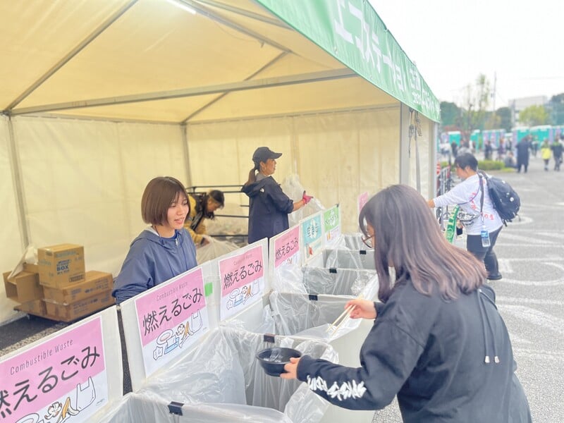 来場者が自分の手でごみ資源を分別できるようにする "ごみ資源の分別ナビゲート" や、ごみの根本削減に取り組む "リユースカップ・食器"の導入など、イベントの環境負荷を下げるための活動をボランティアと一緒に運営しています。