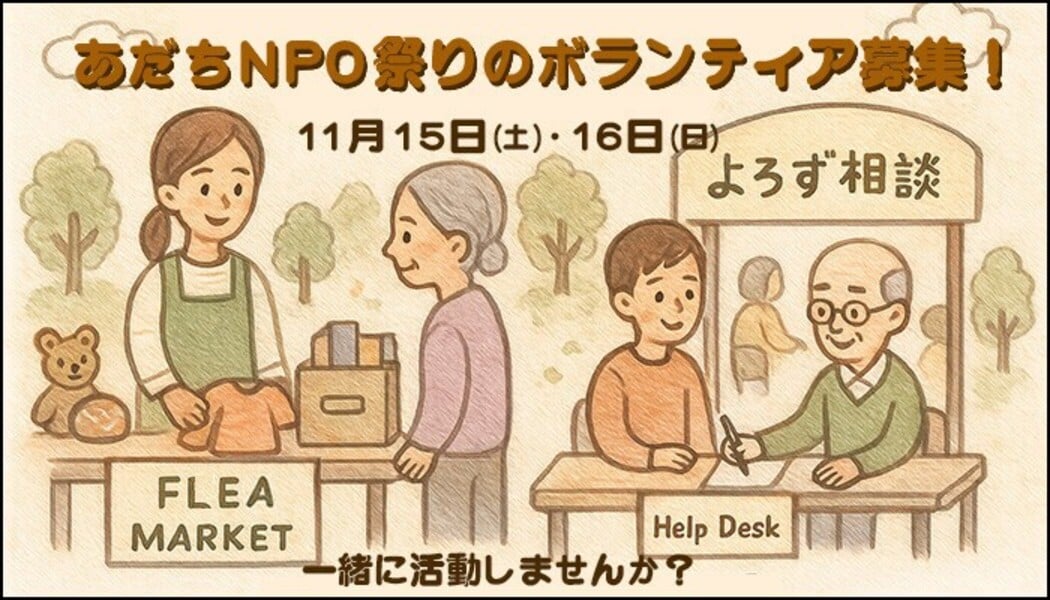 11/15・16あだちN祭り(旧NPOフェスティバル)でのボランティア募集!