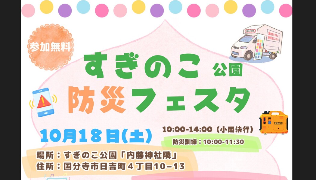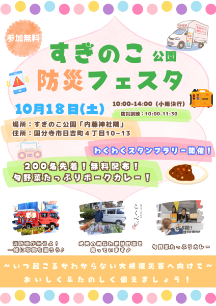 国分寺市にあるすぎのこ公園で開催される「すぎのこ公園防災フェスタ」にレスキューキッチンカー®が出展します!