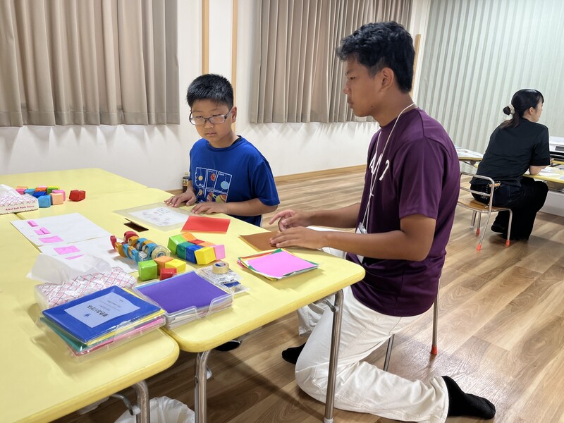 基本的なガイドが社員が行いますので、子どもたちが安心して取り組めるよう補助をお願いします。具体的には、工作の補助をする。