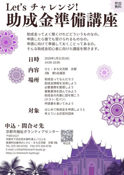 - 【1月21日(水)】助成金準備講座【14:00-16:00】
