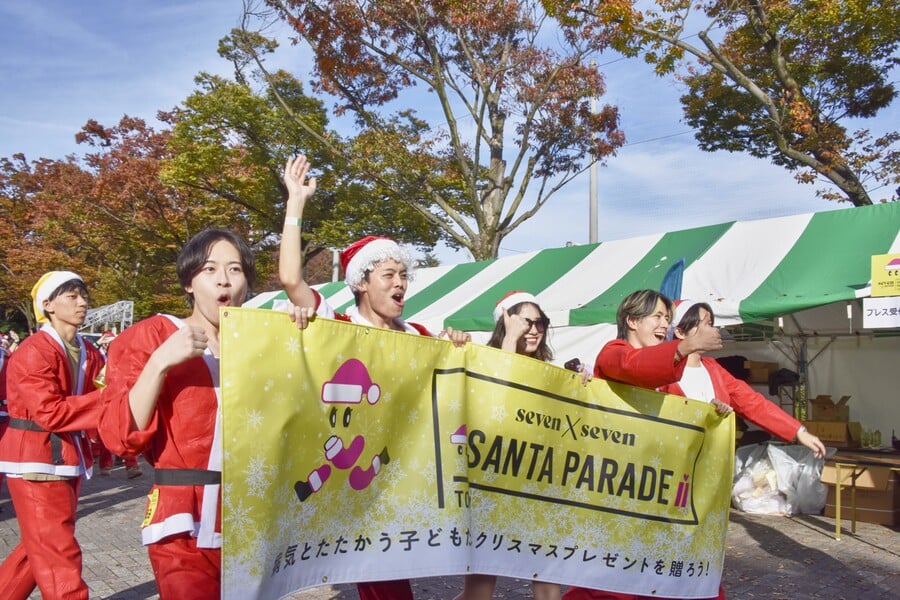 イベントでは、サンタクロースの衣装に身を包んだ参加者がコースをパレード。参加費の一部を活用して国内外の子どもたちの医療支援を行います。