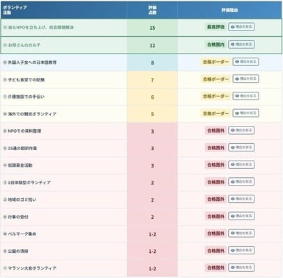 | ボランティア 活動 | 評価 点数 | 評価理由 |