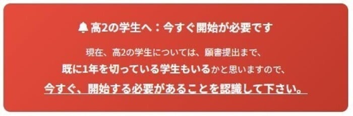 指定校推薦・公募推薦・総合型選抜(AO)などの推薦入試を考えている高校生を対象としています。 |