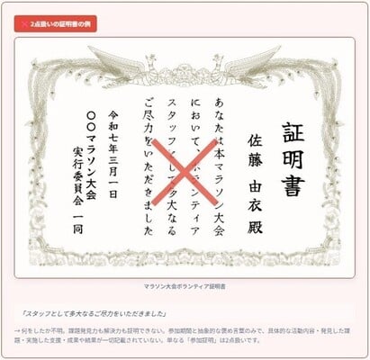 例えば、あなたがマラソン大会のボランティアに取り組んだ場合、