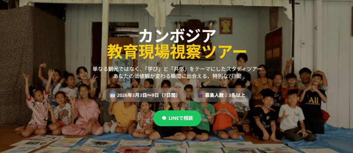 カンボジアでの教育支援活動を直接体験できる特別な機会として単なる観光ではなく「学び」と「共感」をテーマにしたスタディツアー!