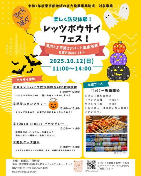 台東区清川地区で防災フェスを開催します。当日様々な防災プログラムを予定しています。ご興味ある方はぜひ運営にご協力ください!