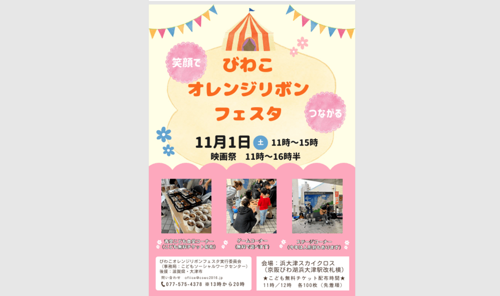 - 「びわこオレンジリボンフェスタ」ボランティア募集!!