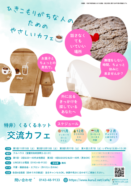 - 話さなくてOK。ひきこもりがちな方も安心して参加できる“やさしいカフェ”お手伝い