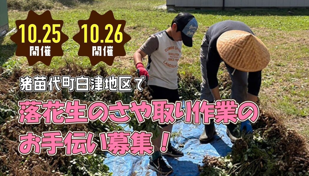 - 猪苗代町白津地区で落花生のさや取り作業のボランティアを募集します!