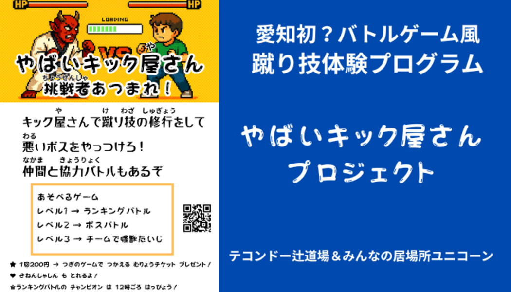 - 地域のお祭りで対戦ゲーム風武道体験「やばいキック屋さん」ボランティア募集