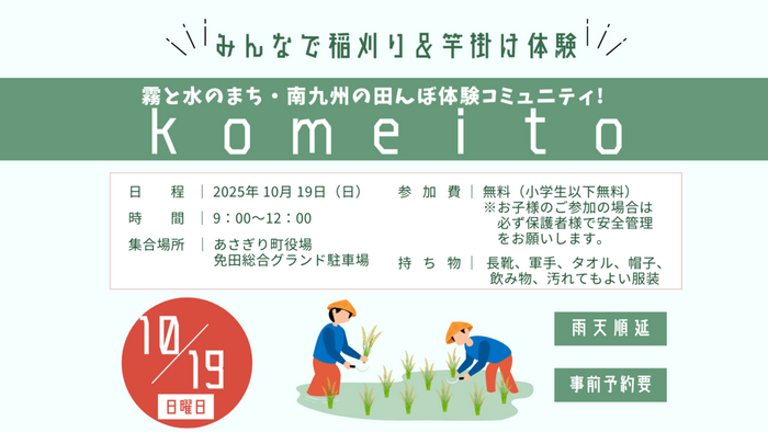 - 10/19(土)有機米の収穫体験イベント開催!-komeito-