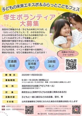 - 【11/30大阪府池田市親子向けイベント】当日の運営お手伝いボランティア募集!!