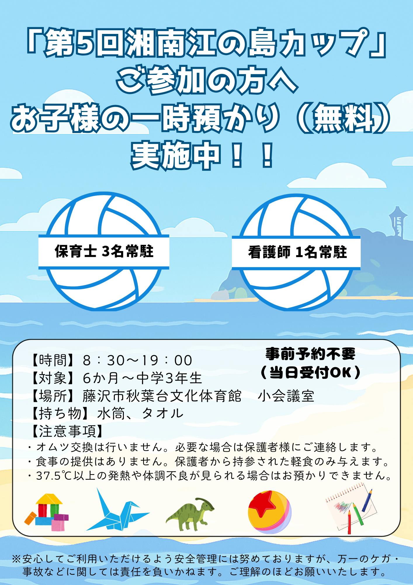 さらに、地域スポーツ協会主催の大会では、一時預かりに加え、子どもたちが楽しく体を動かせる バレーボール教室 を開催。親子それぞれが安心して過ごせる時間を提供してきました。