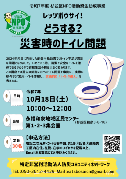 【活動日10月18日(土)】どうする?災害時のトイレ問題 運営スタッフ募集