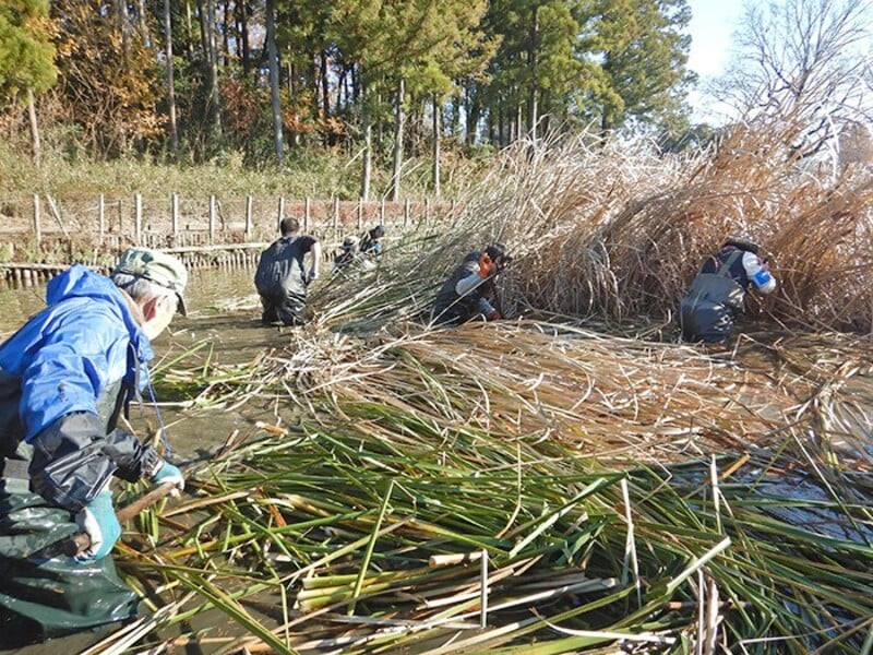 しかし、茂りすぎて水面が覆われたり、冬に枯れ草が積もっていくと、むしろ生きものにとっては棲みにくい環境になってしまいます。