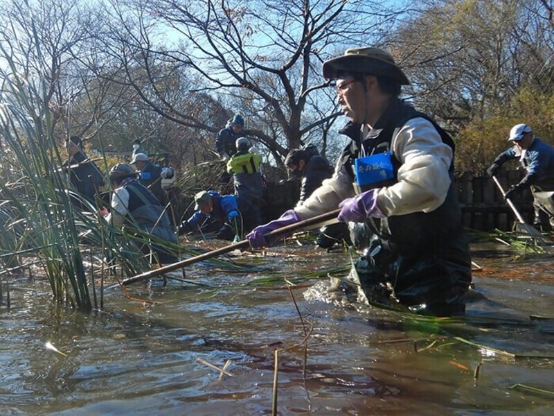 - 上尾丸山公園 水辺の保全作業「みんなで水辺守 池に入ってガマを刈る!編」