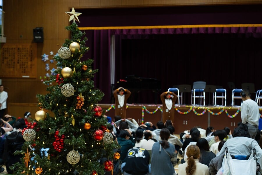 利用者さんと一緒にクリスマス会を楽しむ特別な一日。スペシャルゲストとしてプロマジシャンによるマジックショーや、吹奏楽部によるクリスマスメドレーの生演奏もあります🎵