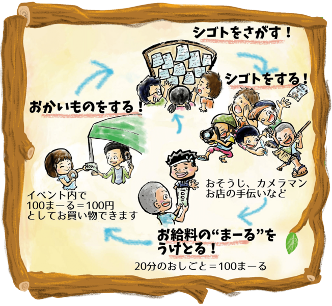 まーるハローワーク(お仕事体験)、縁日コーナーや親子向けワークショップ、キッチンカー、移動図書館などで地域の魅力を発信するとともに、ステージ企画では地域の皆様に楽しい時間を過ごしてもらえるイベントです。