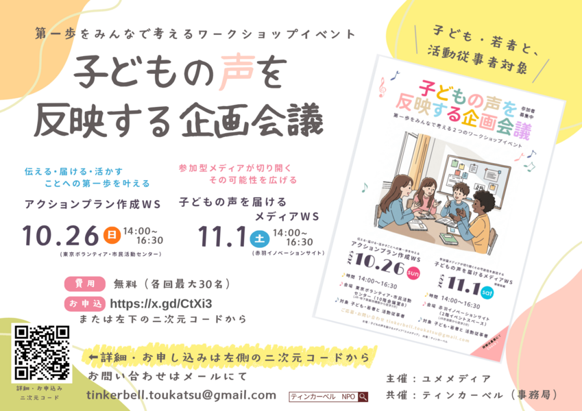 子どもや若者が主体的に意見を出し、アイデアを生み出しながら、「子どもの声をどう社会に活かしていくか」をテーマに思いや意見を“具体的なかたち”として実現できる可能性を探るワークショップイベントです。