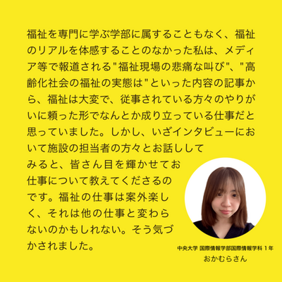 - 【まずは説明会へ】学生目線で "福祉" をインタビュー!感じた魅力を発信しよう