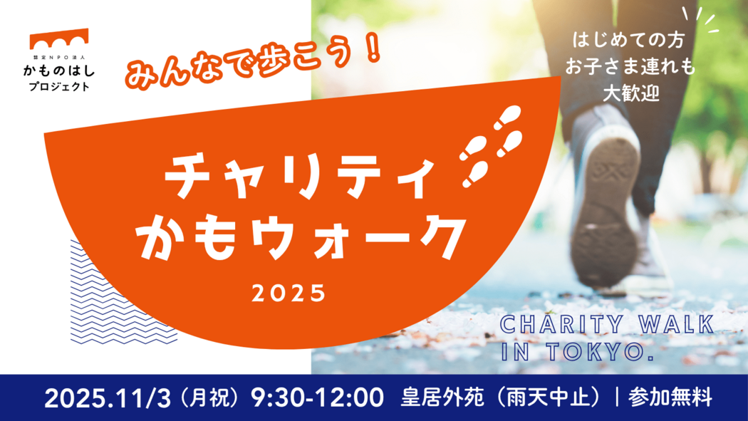 11月は児童虐待防止月間。歩くことで支援できる「ORANGE WALK 2025」参加にあわせ、11/3(月・祝)皇居外苑で初のチャリティかもウォーク開催!あなたの一歩が未来を照らします。
