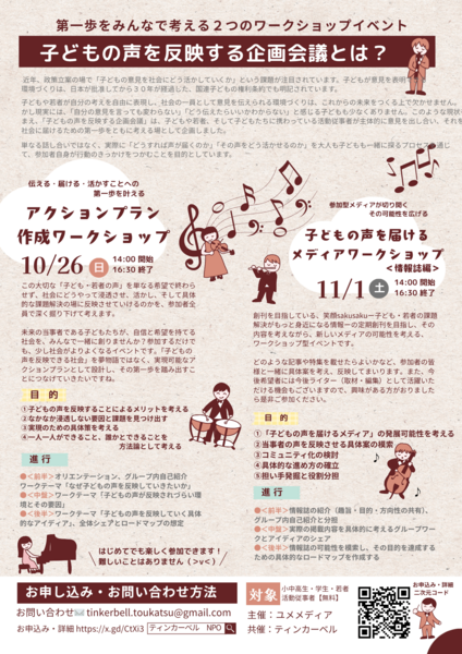 - 11/1土「子どもの声をどう社会に活かしていくか」を考えるWSに参加しませんか。