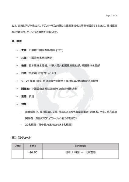 ・18~40歳の #農業活性化 、#農村振興 に従事・関心のある若手農業従事者、#起業家、#学生、#地方政府関係者・英語でのコミュニケーションがとれる方(一部日本語通訳あり)   |