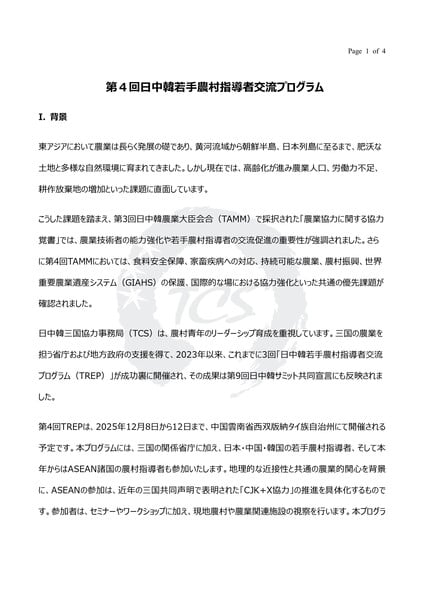 第4回「日中韓若手農村指導者交流プログラム(TREP)」参加者募集中!✨