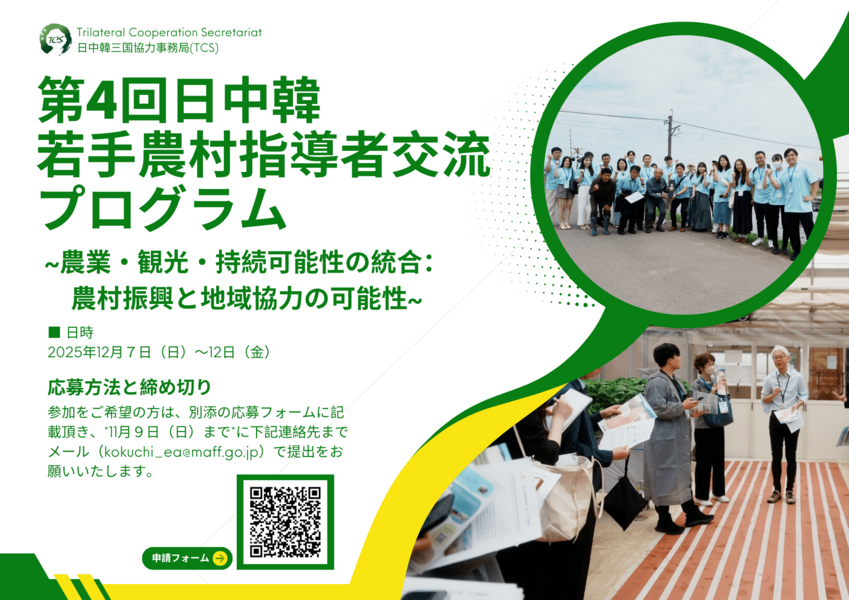 - 第4回「日中韓若手農村指導者交流プログラム(TREP)」参加者募集中!✨