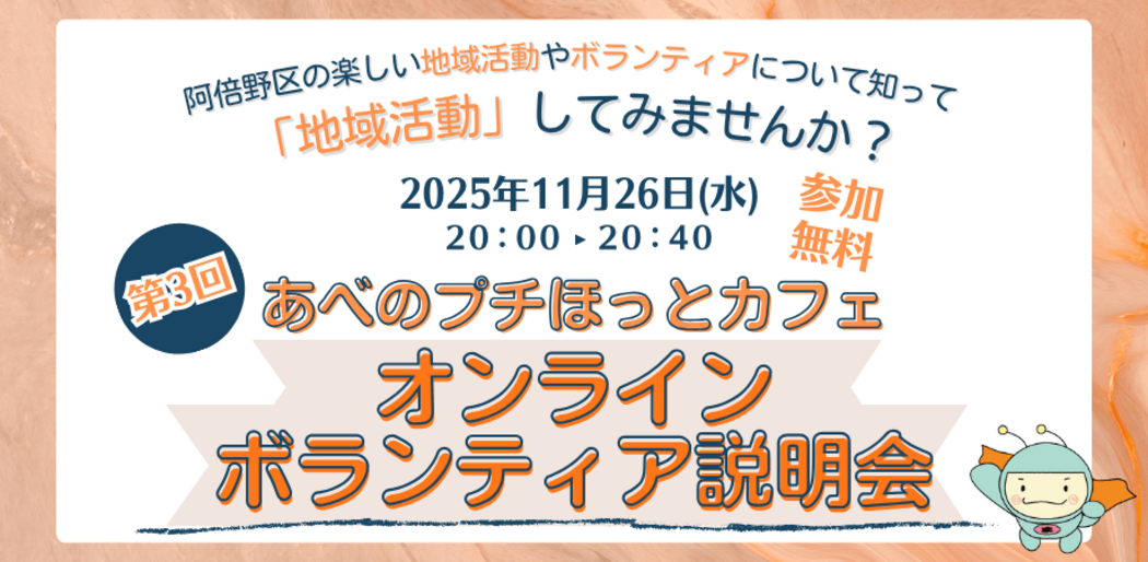 - 第3回! あべのプチほっとカフェ ~オンライン ボランティア説明会~