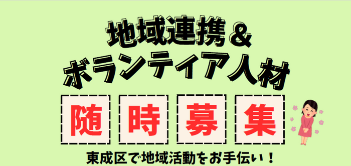 東成区まちづくりセンターでは、地域活動をお手伝いしてくださるボランティアさんを募集しています!