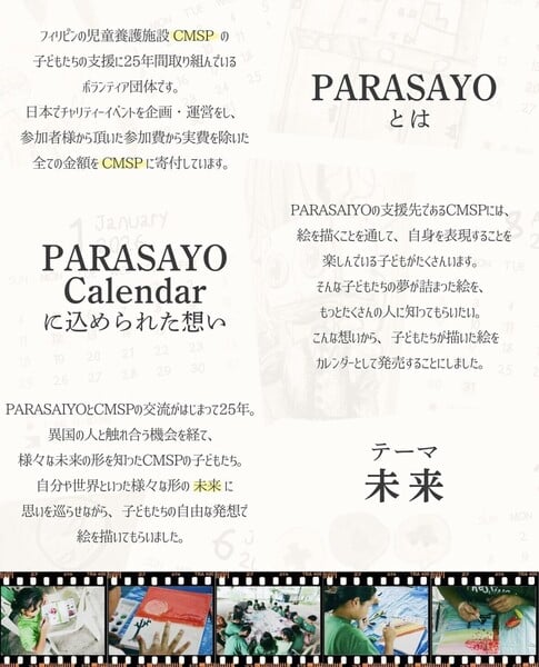 フィリピンの児童養護施設CMSPの子どもたちの教育費を25年継続して支援する、我々PARASAIYO(パラサイヨ)が制作する「チャリティーカレンダー」のご紹介です!