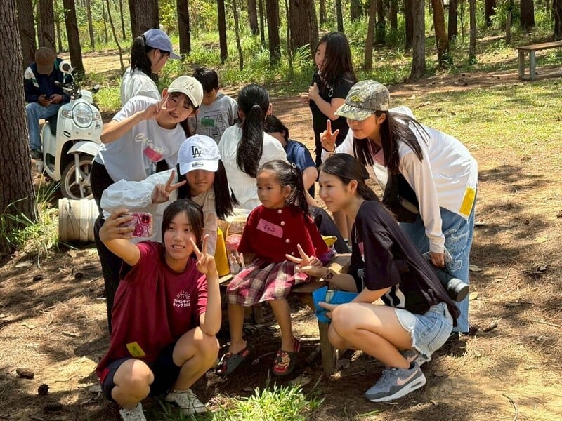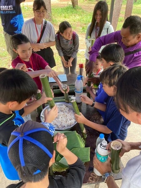 日本から参加する小中学生のこどもたちのほか、現地大学生やスタッフ、在住日本人など幅広い年齢層の人と関われます。 |