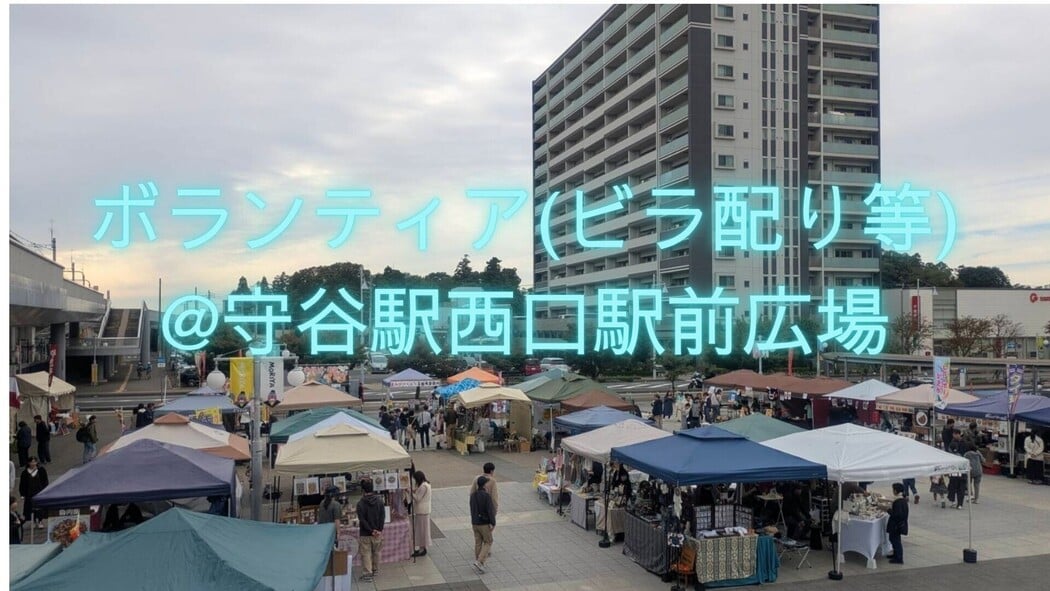 茨城県守谷市の地域イベントのブース内で私達の活動のビラ配り等を行います!周辺住民の方、またはボランティアに興味のある方で一緒にビラ配り等のお手伝いをしてみたいなと思った方はぜひ連絡ください!✨️